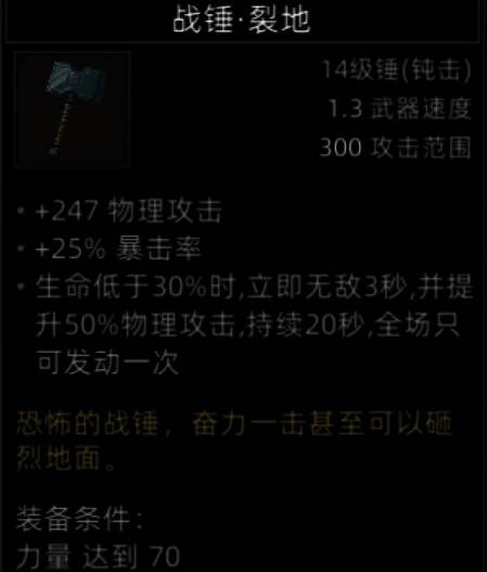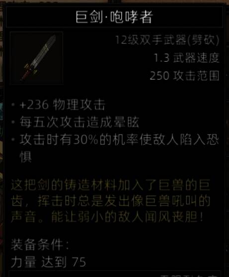 V1.0.7版本,装备需要250点力量,1周目是非常非常难达到这个装备的穿戴条件的,最少2周目,并且要刷多次雪山图书馆。