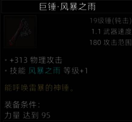 因为有1级的风暴技能还有313超高的物理攻击,可以给用锤的盾用,即使肉盾也可以打出伤害。