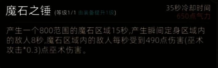 锤中非常好的存在,每5次攻击的250%的巫术伤害,8秒的800范围控制。