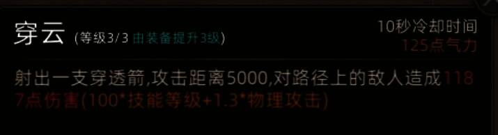 350的攻击加成,关键是3级的穿云,5000超远距离的穿透箭,而且cd只有10秒,玩弓神器之一。