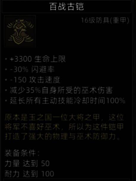 可以给肉盾穿,有巫术减伤,而且-100%的被暴击是个非常好的防御词条。