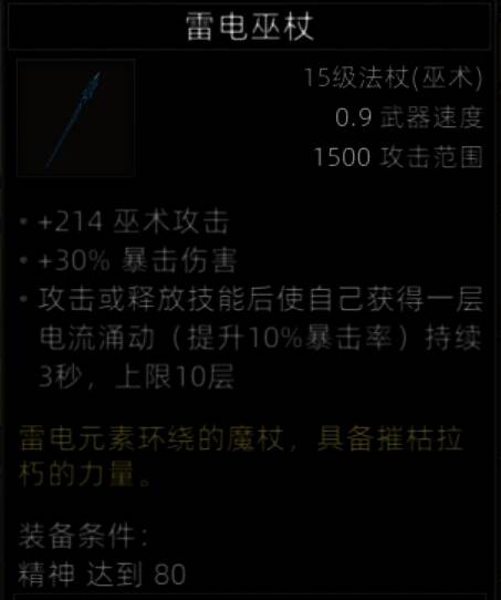输出不低于恐惧巫杖的存在,30%爆伤加成,如果再给坐骑、饰品、什么的附魔暴击,百爆装备了。
