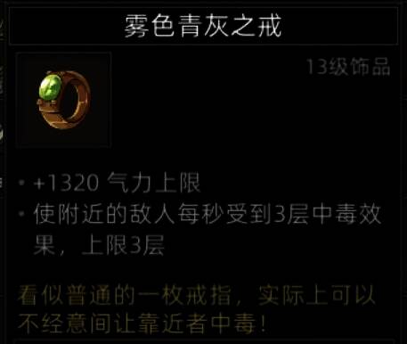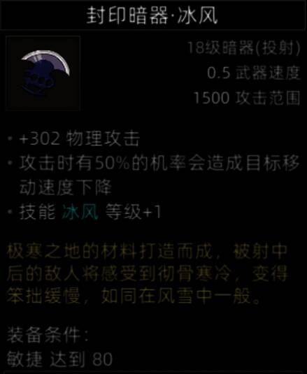 暗器中的极品,不低的攻击加成,攻击50%概率的减移速,再加上15秒cd持续15秒debuff的攻速移速双减。