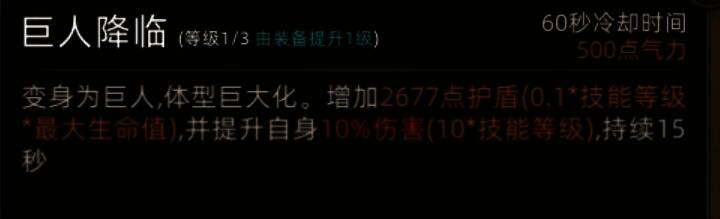 直接血量翻一倍,但是没有减伤,而且巨人降临的CD过长,可以给肉盾过度用用。