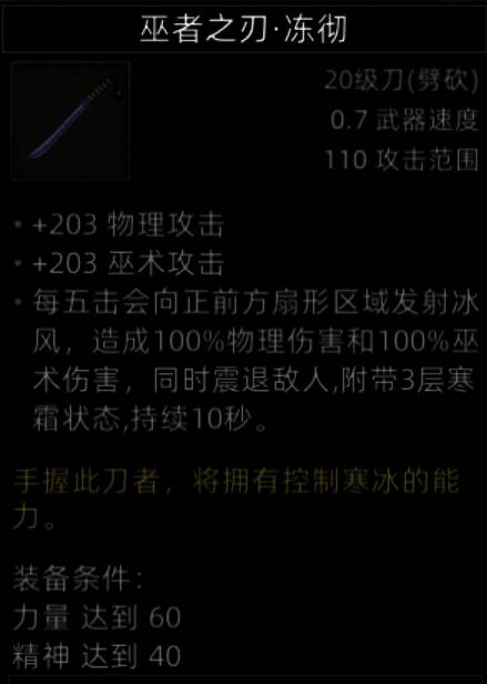 非常好的刀,物理和巫术加成都不低,而且专属词条有伤害也有控制。