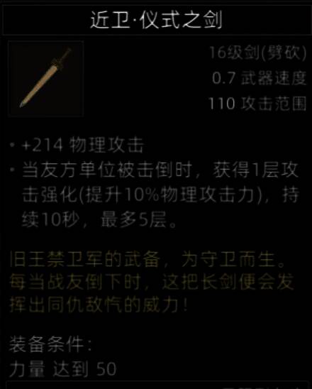 如果未生效bug被修复,该装备是前排NPC队友的可选毕业装备之一。