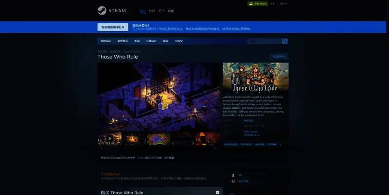 可以去Steam平台下载,地址是:https://store.steampowered.com/app/1822060/Those_Who_Rule/。