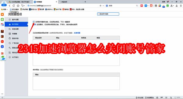 很多用户在使用2345加速浏览器软件的时候为了方便记住账号密码,开启了账号管家功能。那么如果不需要账号管家管理这两个功能的话,要怎么关闭这个账号呢?不理解的小伙伴快一起来看看吧!