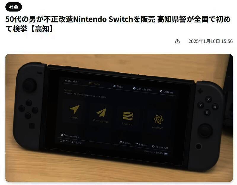 目前,警方已查获4台改造Switch,并对男子犯罪行为进行深入调查。这起案件是日本首个因涉及销售改造的Switch而被逮捕的案例。