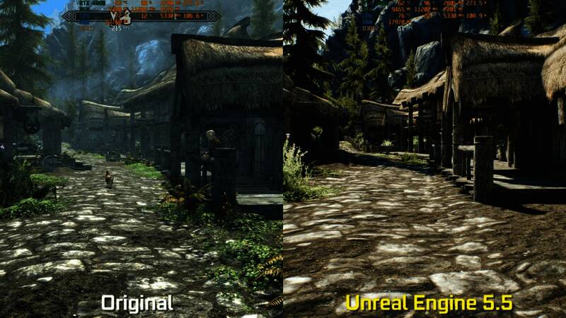 之前有粉丝使用虚幻5.5引擎打造了《上古卷轴5》场景演示,让经典游戏焕发新活力。近日油管主MxBenchmarkPC分享视频,将《上古卷轴5》虚幻5粉丝版与原版进行了对比,展示了粉丝版的画面改进。