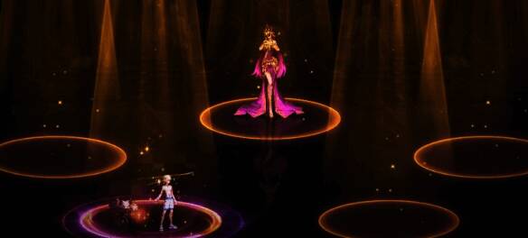 1、召唤4个聚光灯,会有其中一个带有紫色扩散特效直接进入,聚光灯移动时跟随移动;