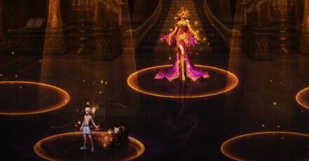 2、露迪丝锁定玩家施放红色圆形圈,然后塞蕾娜在左边或右边施放红色直线攻击。
