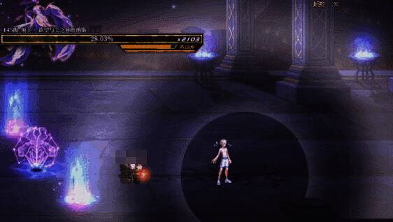 4、Boss召唤聚光灯,进入带紫色特效的灯,跟随灯移动出现红圈时在灯内跳跃躲避
