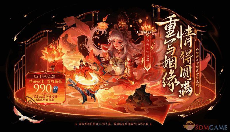 若拥有蛇年新春好运卡(开卡价180点券),购买西施-续相思皮肤,首周价格低至990点券