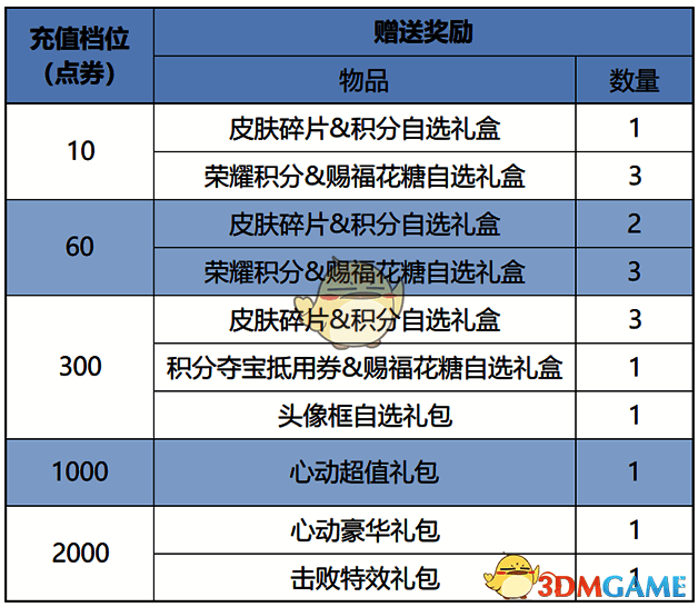 皮肤碎片&积分自选礼盒:打开礼包可任意选择以下奖励之一:荣耀积分*10或皮肤碎片*1