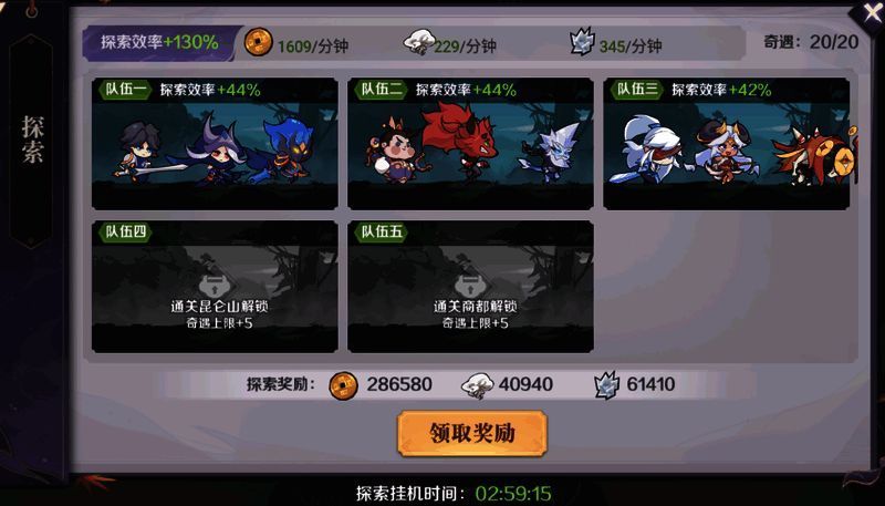 P.S:由于探索挂机时间最长只能累积到24小时,最好每天上来领取2次,保证探索资源不溢出就行