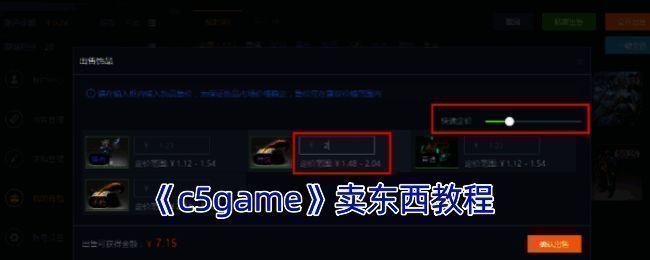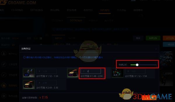 2、勾选好饰品之后点击公开出售就可以手动输入您要出售物品的价格,也可以拖拉滑条来快速定价。