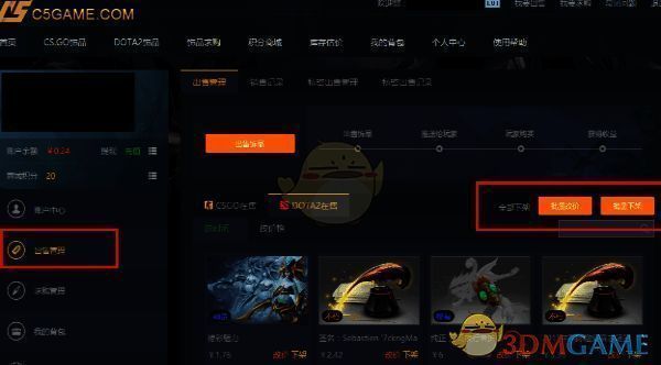 4、公开出售中饰品的改价和下架:如下图点击出售管理,可以对勾选上的饰品进行批量改价及批量下架功能。