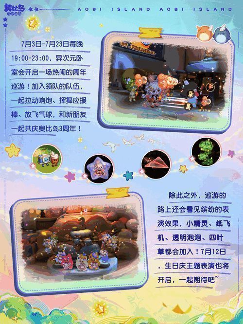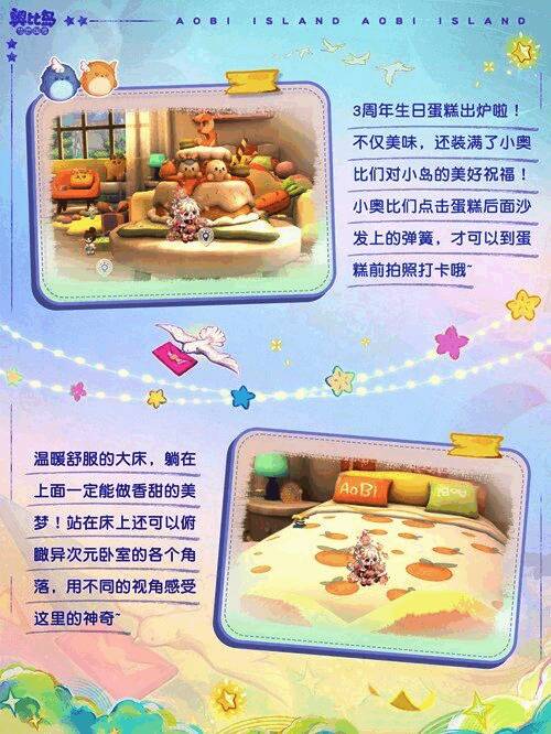 7月3日版本更新后,小奥比们可前往全新3D场景「异次元卧室」参加周年庆狂欢,在同款打卡点拍照留念!各个打卡点还有惊喜互动等着大家参与!