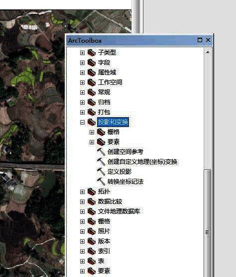 5、然后再找到投影和变换工具——要素——定义投影
