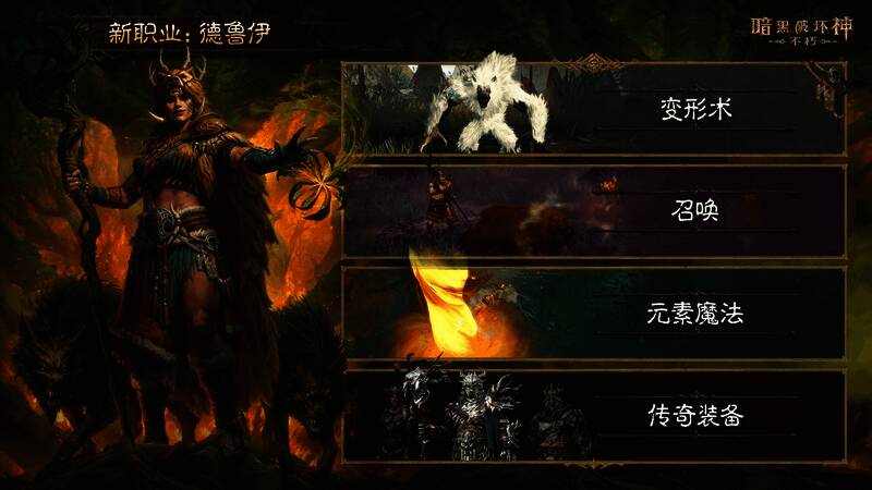 《暗黑破坏神:不朽》全新职业——德鲁伊,现已上线!德鲁伊是原始守护者,他们能变形为野兽、呼唤凶猛的动物伙伴,驾驭大自然的元素力量。今日起,你将可以成为自然的终极守护者,守护沙瓦尔家园和庇护之地,以利爪锐齿抵挡恶魔和煞魔的腐化与威胁。