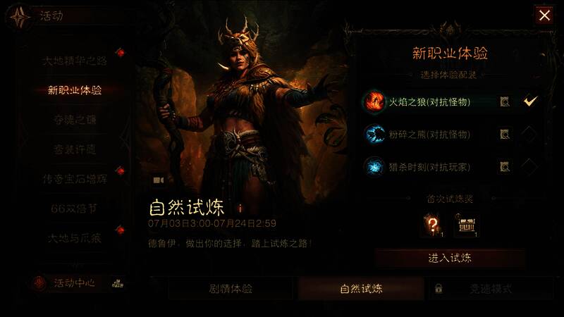 同时,新职业专属混沌秘境也已开启,体验玩法即可化身新职业【德鲁伊】,灵活化形荒野的不同姿态,引导飓风与火焰,施展自然之力,冲击更高的层数。