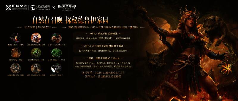 沙瓦尔荒野和德鲁伊,正从庇护之地向我们走来,走入了冒险者的世界!6月28日至7月27日期间,《暗黑破坏神:不朽》与广州正佳雨林生态植物园携手,为冒险者们带来一场奇妙的雨林寻踪之旅,我们诚邀大小冒险者一同探访荒野守护者——德鲁伊的家园。