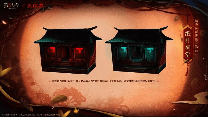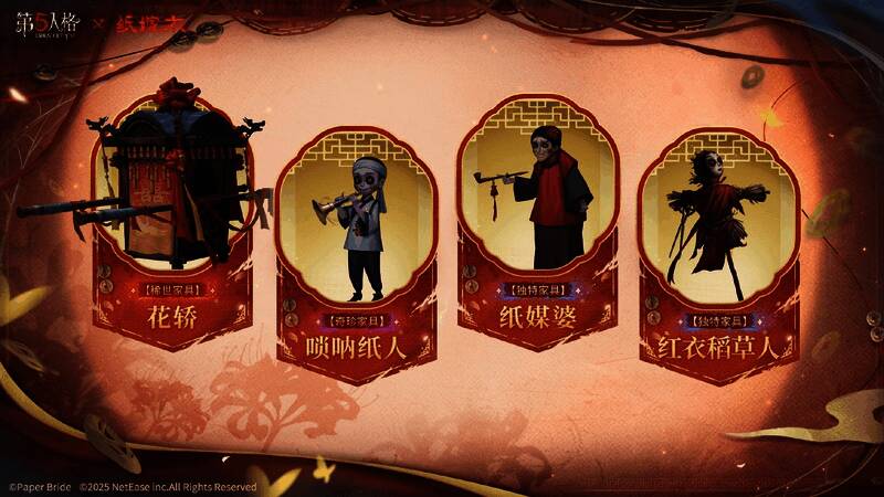 2025年7月3日维护后-2025年7月30日23点59分,第五人格×纸嫁衣小程序联动活动上线,微信搜索【网易第五人格】官方小程序,参与活动可获得【头像框】纸嫁衣等奖励!