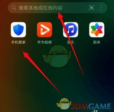 1、如果在手机桌面上没有找到手机管家,可以滑动打开搜索栏。
