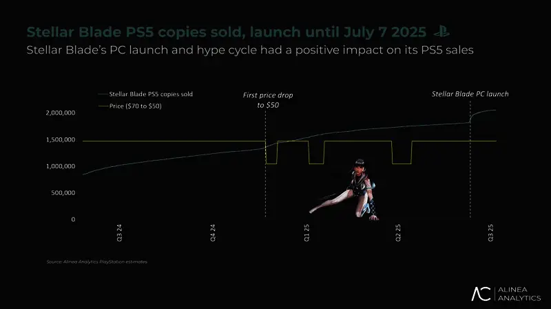 《剑星》最初于2024年4月登陆了PS5,在发售后近两个月才卖出第一百万套。截至2025年初,PS5平台的累计销量达到200万。