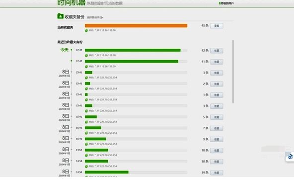 ②在“备份与还原”的子菜单里,能看到“从历史版本中恢复”这一功能,您可以选择从近期备份里恢复收藏夹。