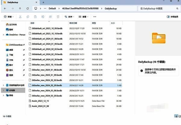 360浏览器收藏夹一般保存在这个位置:D:\360se6\User Data\Default\4638ee13ee8ff4a0f500c023e9b99988\DailyBackup。找到上述路径下的收藏夹文件,将其复制备份,然后尝试覆盖当前用户的同名文件,这样有可能恢复收藏夹内容。