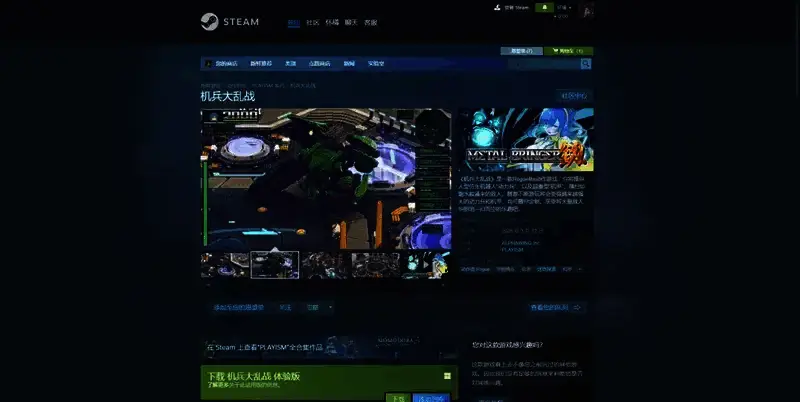 Steam平台需要先安装Steam平台,之后注册一个账号登录,然后搜索“机兵大乱战”进入商店购买页面。