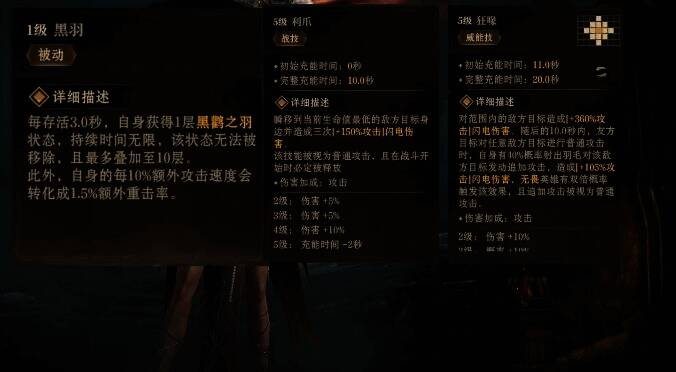 同时被动产生的同时她自身的每10%额外攻击速度会转化成1.5%额外重击率,而黑鹳之羽状态能为纳斯婕卡带来5%的攻击速度加成,再来说说她的战技利爪,可以快速移动的同时造成三次超过150%攻击的闪电伤害,该技能被视为普通攻击,这意味着在战斗节奏上能够更好地与其他技能和普通攻击进行衔接,并且在战斗开始时,这个技能必定被释放,这给了队伍在开场时就取得优势的机会。