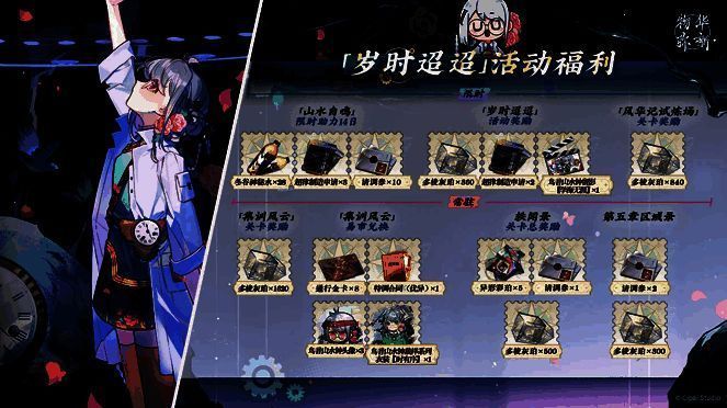8月1日,懵懂迷茫的新器者鸟音山水钟就要在新版本上线啦,快来帮助她学习知识顺利通过基金会技术部的考核吧!在「岁时迢迢」限时活动中,收藏家完成活动任务可获得多棱灰珀、器者养成材料、冬谷礼盒、超律制造申请、鸟音山水钟留影【学海无涯】等奖励。