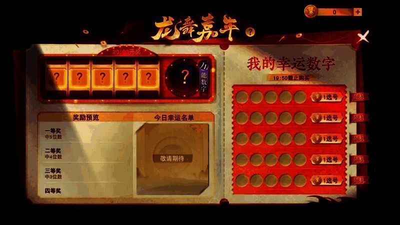 7月13日至8月13日活动期间,少侠参与龙舞嘉年活动挑选心仪数字,每日中奖号码揭晓后,若存在相同数字即可拿下众多好礼!重合数字越多,奖品越丰厚,更有机会修改万能数字拔高奖励,200万军资、高额绑元等静候少侠抱走!即使没有中奖也能带走参与奖,绝不让一位少侠落空!