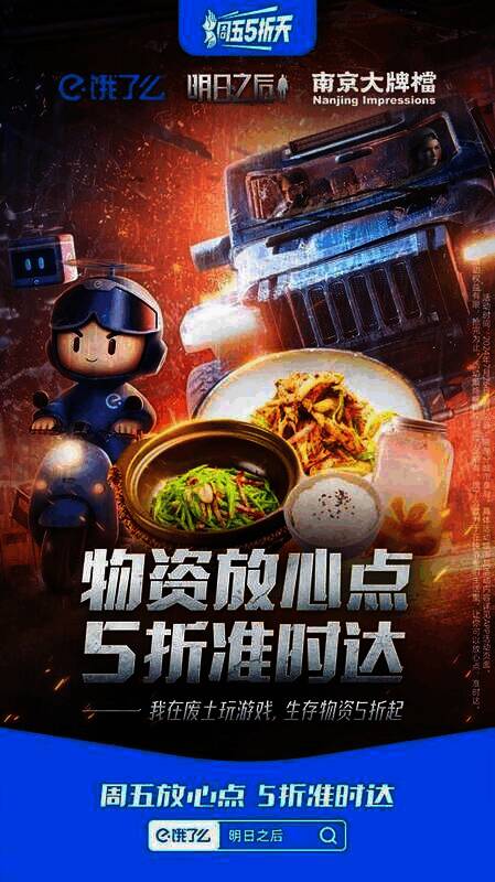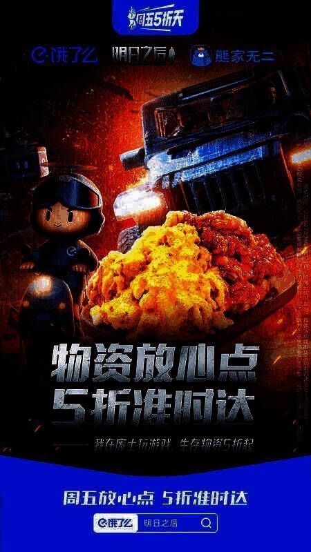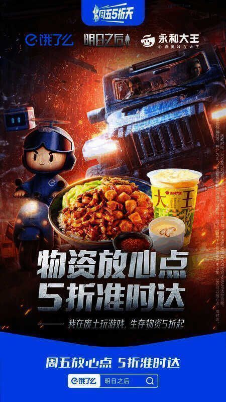 为协助幸存者们应对蓝潮危机,联盟携手饿了么5折天打造明日专题美食会场,多重福利助力幸存者们冲破困境,守护生机!场内大牌商家福利5折起,更和深度合作商家定制推出明日之后联名套餐,精美定制周边随餐送!还有上万份饿了么×明日之后游戏礼包码免费抽奖!赶快上饿了么搜索”明日之后“即可进入联名美食专场,下单解锁更多福利吧!