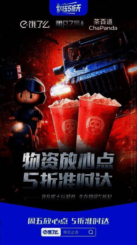 【联名套餐】明日之后×饿了么携手茶百道、熊家无二、南京大牌档、永和大王,推出明日主题生存套餐,为幸存者们提供优惠补给,助力抗击感染者,驰骋蓝潮汹涌的明日世界!