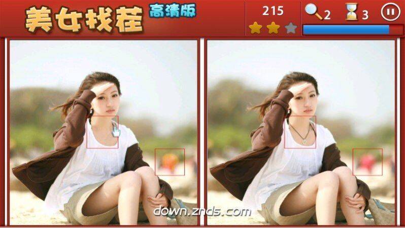 需在规定时间内找出两幅图片间的细微差别才能解锁下一关。点错会扣时间,每次的不同之处也是随机改变的。