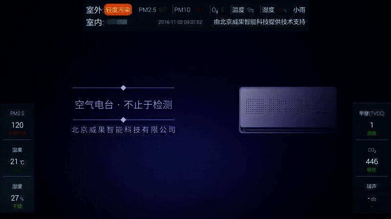 空气电台是北京威果智能科技有限公司为Android电视开发的大屏监控软件。它能测量PM2.5、CO₂、VOC、温度、湿度等多项参数,还兼容多家公司的产品。通过手机APP绑定设备,无需注册,你就能随时随地掌握家中或身边的空气质量情况。