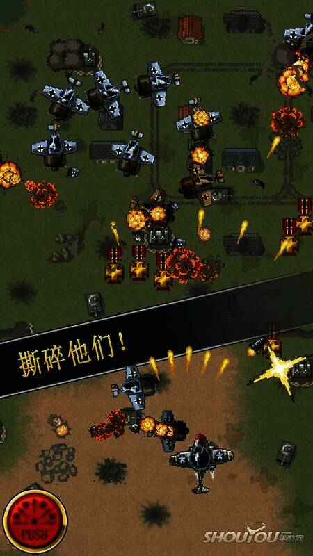 玩家用一根手指就能控制战机的飞行轨迹,战机可自动发射子弹。