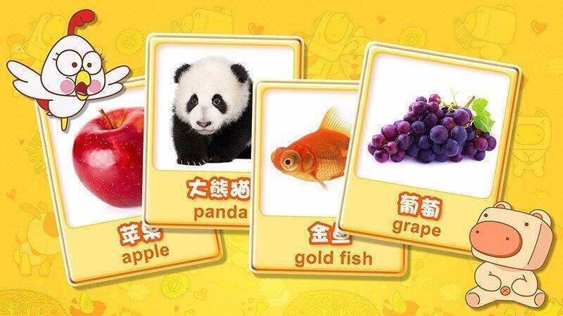 1. 每张图片配备标准汉字和英文单词语音。