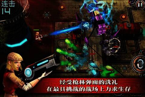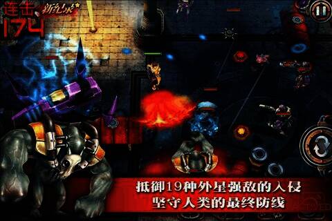 火战线又名最后怒火:战争防御(Final Fury: War Defense),是动作射击类游戏,以虚拟摇杆控制人物,玩法简单,跟着教程操作就行。玩家要在一波波外星侵略者的攻势下生存,很考验操作,画面绚丽,还有多种武器可选,不同武器攻击特效各异。