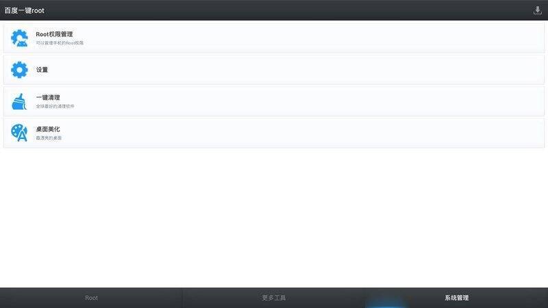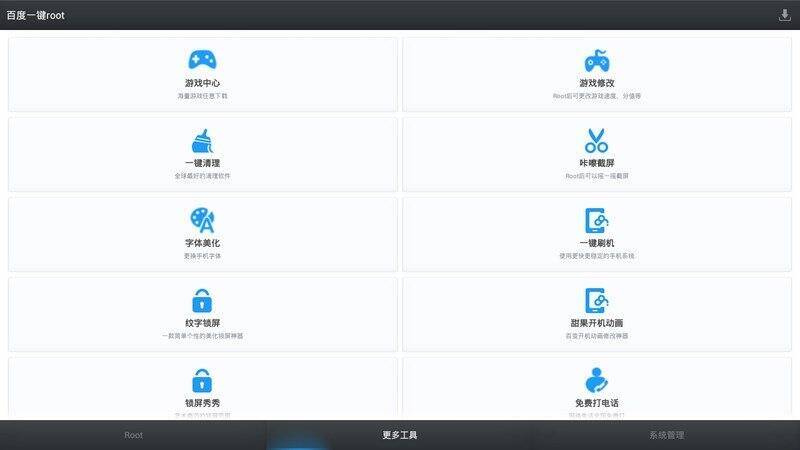 ROOT存在风险,请谨慎使用!百度一键ROOT支持6000多款机型,能完美适配安卓2.2 - 4.4的主流机型,集成了几十套强力智能Root引擎。Root成功后可获取最高权限,让使用更自由,还能进行系统精简、开机加速、内存管理、权限监控等操作,需用鼠标操作。
