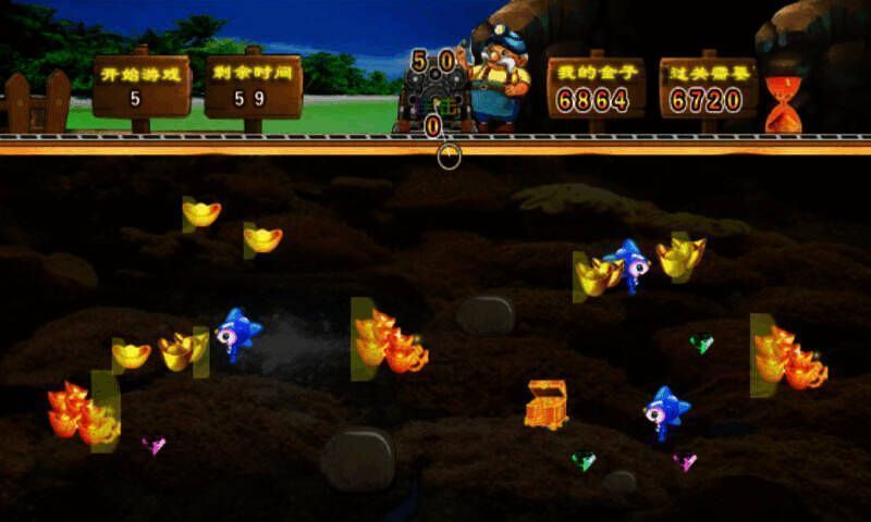 3、游戏新增了四种颜色的宝石和多种动物等可抓取物品,还增加了宝石增值剂、钛缆绳和加时器等多种游戏道具,使道具更加丰富。