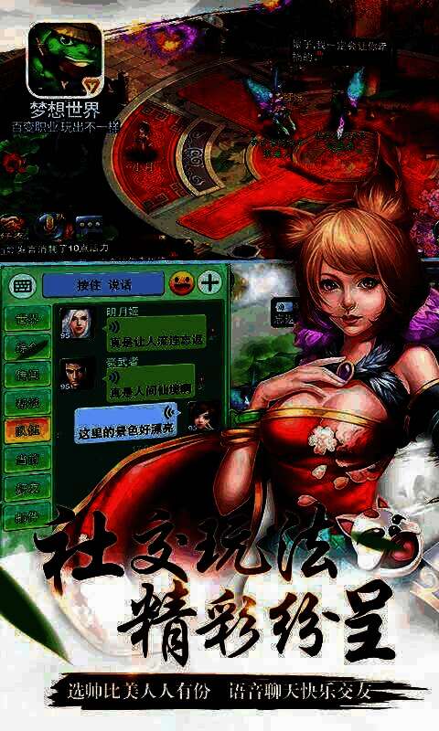 选帅比美人人可参与,语音聊天快乐交友。是平淡度日,还是逍遥江湖?不如来梦想世界,与好友畅谈江湖,与心爱之人喜结连理,共建梦幻家园,恩爱一生赛神仙!