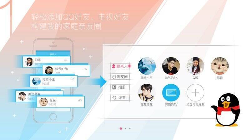 《亲友圈》是一款极为实用的视频通话及熟人社交软件。它由中国家电龙头创维集团联合腾讯QQ物联打造。操作简便,无需在手机端额外安装软件,用手机QQ扫描二维码绑定智能电视,就能免费高清、流畅地与电视视频通话,还能和QQ亲友互通图片、语音。
