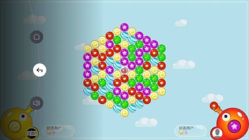2. 角落发射泡泡,三个同色消除,解救小怪兽赢胜利。