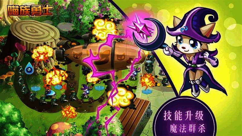 《喵族勇士》是一款Q版魔幻风格的经典塔防游戏。其可爱的人物造型搭配精致唯美的场景画风,构建出一个奇幻的魔幻世界。玩家将扮演勇敢的训练师,训练勇士猫咪,对抗以克里尔克为首的邪恶老鼠军团。