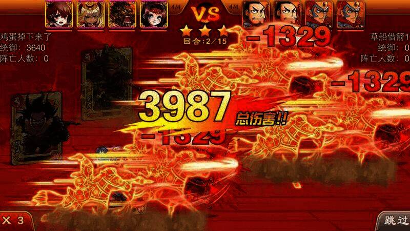 三位神将可终极合体,创造超神传说;九位神将能自由组合,打造神级阵容。突破武将属性界限,让武将自由成长。颠覆传统卡牌形象,武将变态式合体搭配绚丽技能特效,战斗打击感十足,爽翻全场!